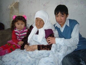- 25-28 жашында эле күйөөдөн калыптыр, күйөөсү согушка кетип. Анан согуш маалында агасынын томолой жетим калган чиедей төрт баласын багып калып күйөөгө такыр тийбептир. Ошондо алардын улуусу эле менин атам беш жашта экен. Анан кийин алар балалуу болду, бизди бакты. Анан биздин балдарыбызды бакты. Энем он сегиз бала бактым деп өзү санап отурчу. Энемдин эмгеги чоң. Мына Сүйүнбектин мобул баласын деле терметип отурчу, ыйлаак деп, азыр бул 14 жашта.