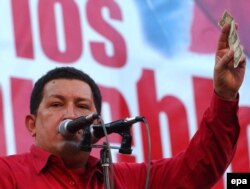 Венесуэла президенти Хуго Чавес АКШнын 1 долларын көрсөтүүдө. Каракас. 23-январь 2005