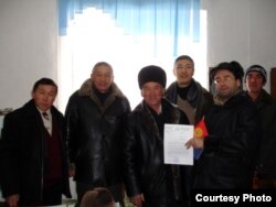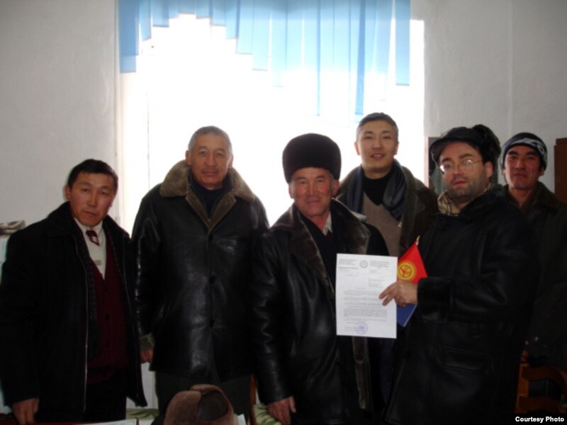Давид Гаүзер (оңдон экинчи) Жети-Өгүздө жергиликтүү жетекчилер менен, 2009-жыл
