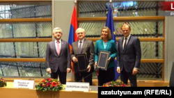 "Чыгыш өнөктөштүгүнүн" Брюсселдеги саммитинде Армения менен Евробиримдик Ар тараптуу жана кеңейтилген өнөктөштүк тууралуу келишимге жетишишти. Ага Армениянын тышкы иштер министри Эдвард Налбандян жана Евробиримдиктин тышкы иштер боюнча жогорку өкүлү Федерика Могерини армян президенти Серж Саргсян менен Еврокеңештин төрагасы Дональд Тусктун катышуусундагы аземде кол коюшту.