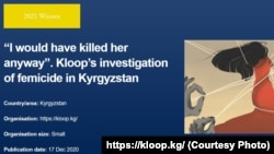 "Клооптун" фемицид тууралуу иликтөөсү эл аралык Sigma Awards сыйлыгын алды