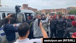 Арменияда өкмөттүн отставкасын талап кылган акциялар уланууда. «Азаттыктын» армян кызматынын 14-майдагы маалыматына караганда, саат эртең мененки 10го карата полиция митингдин 38 катышуучусун «күч органдарынын мыйзамдуу талаптарына баш ийген жок» деген негизде кармап кетти.