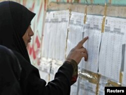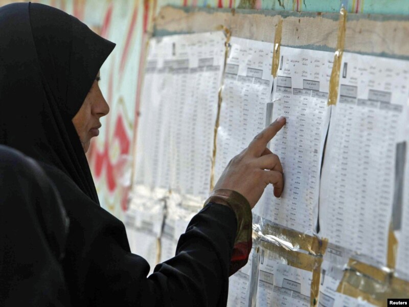 Ирактык аял 7-марттагы парламенттик шайлоого катышчу талапкерлердин тизмесин окууда. Басра. 3-март 2010