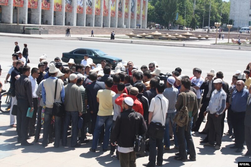 Эстеликти алып салууну каалагандар менен аянтта Биринчи май районунун акиминин милдетин аткаруучу Аскарбек Алиев жолугуп, маселени мыйзам чегинде чечүүнү, Бишкек шаар мэриясына кайрылууну сунуштады.