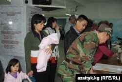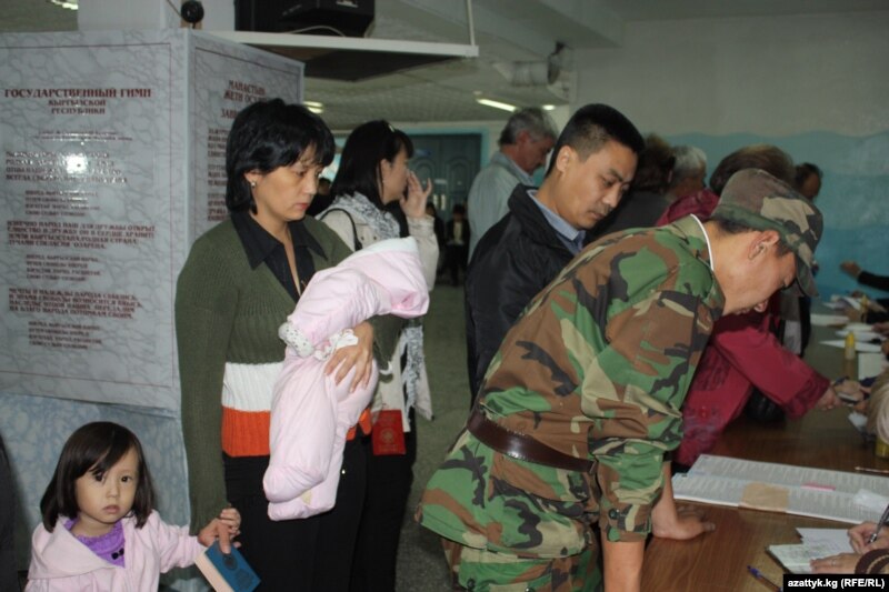 Бишкектеги шайлоо бекеттеринин биринде добуш берүү. 10-октябрь, 2010-жыл.