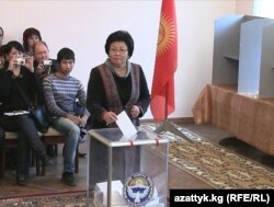 Президент Роза Отунбаева добуш берүүдө. Бишкек 10-октябрь, 2010-жыл.