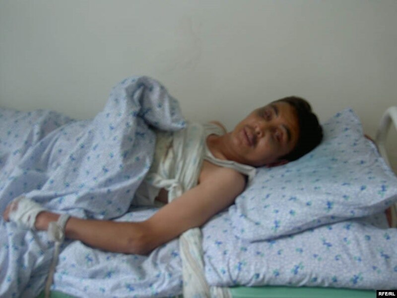Дарыгерлердин уруксаты менен реанимация бөлүмүндө жаткан Алмаз Ташиевдин бөлмөсүнө баш бакканыбызда, ал улам-улам онтоп атып, аны сабаган милиция өкүлү туурасында кыскача буларды баяндаган: