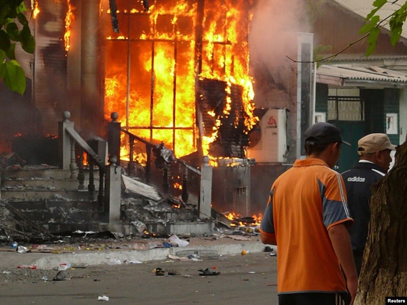 Ош шаарында түндө болгон башаламандыктар маалында 10 чакты имарат талкаланды. Ички иштер министри Болот Шердин маалымдашынча, шаарда тополоңду уюштурду деген шек менен беш киши кармалды.