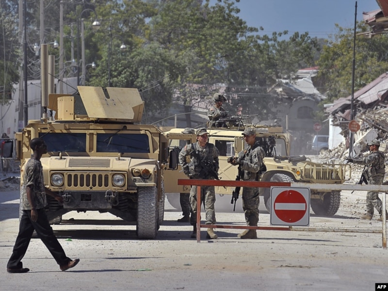 АКШлык аскерлер Порт-о-Принстеги Гаити президентинин сарайына чукул жерде күзөттө турушат. 21-январь 2010
