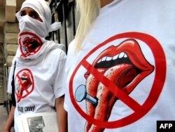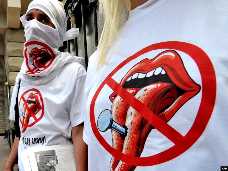 "Сөз эркиндиги " деп аталган жарандык демилгечи топтун мүчөлөрү Украинанын коопсуздук кызматынын кеңсесинин алдындагы нааразылык акциясы учурунда. Киев. 17-июнь 2010