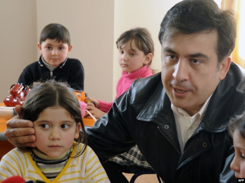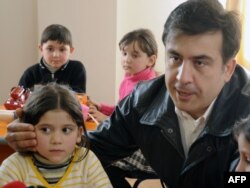 Президент Михаил Саакашвили Түштүк Осетиялык качкындар менен кездешүүдө. Церовани. 17-март 2010