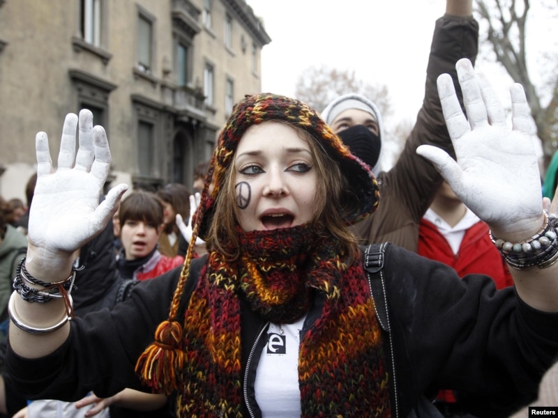 Cтуденттер 22-декабрдагы демонстрация учурунда. Рим. 2010