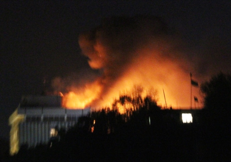 Өрттөн күйүп, түтүндөн тумчугуп жаткан "Интерконтиненталь" мейманканасы. 29-июнь 2011.