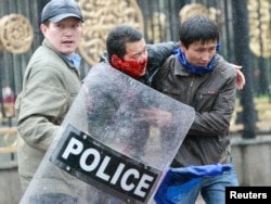 “Милицияларды алып келишсе керек” деп ойлодук. Элди “Форум” имаратынан сыртка айдап чыгышты. 5-6 журналист болуп сүрөткө тартып, маалымат чогултуп жатабыз. Укук коргоочу Т.Үмөталиева, депутат И.Карамушкина аялдаманын үстүндөгү бетонго чыгып алып “бул Бакиевдин үй-бүлөлүк режими биздин лидерлерди камады. Алар курултай өткөрүүгө каршылык көргөздү. Лидерлерибиздин чыгарылышын талап кылабыз! Болбосо Ак үйгө жете албай калыптырбызбы? Жол биздики!” деп кыйкырып сүйлөп жатышты.