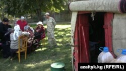 Боз үй тигип, бир канча күндөн бери митинг уюштургандардын дээрлик баары аялдар. Арасында улгайгандар, орто жашка барып калгандар, бир баласын көтөрүп, экинчисин жетелеген, же кош бойлуу келиндер, кыздар да бар.