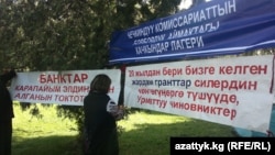Бишкекте чакан насыя компанияларга карызы барлардын мөөнөтсүз митинги уланууда.