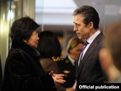 Президент Отунбаева НАТО баш катчысы Андерс Расмуссен менен. Брюссель, 28-февраль.
