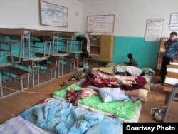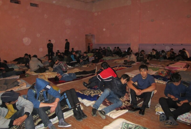 Кыргызстандык студенттер бир нече күн ушинтип окуу бөлмөлөрүндө, спорт залда жашашты. Орусия, Ржев шаары.