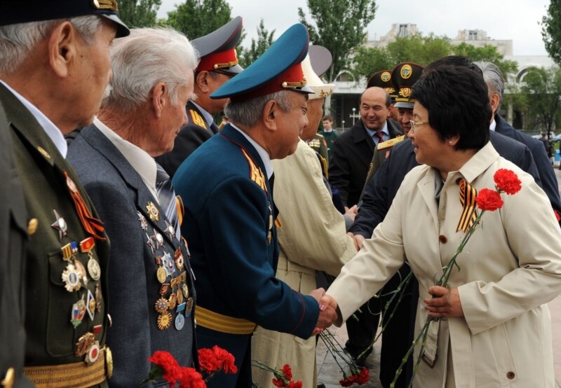 Президент Роза Отунбаева ардагерлерди куттуктоодо. Бишкек, 9-май.